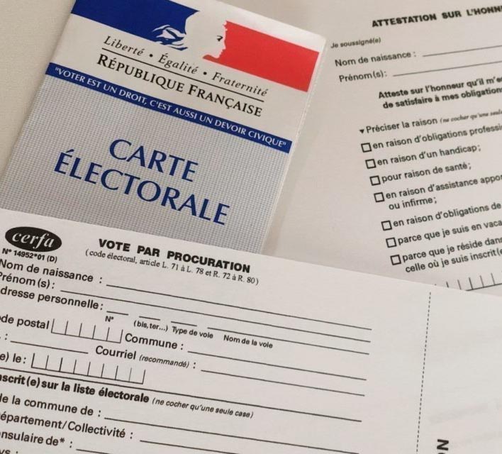 - Sur place : formulaire papier à remplir et valider au commissariat de police nationale, gendarmerie ou tribunal judiciaire, avec une pièce d'identité et les informations du mandataire inscrit sur les listes électorales.