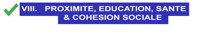 Le bien-être de nos enfants avec la création de garderie et crèches, la rénovation, la création des cours, une cantine publique en régie alimentaire saine et local et la rénovation des équipements sportifs.